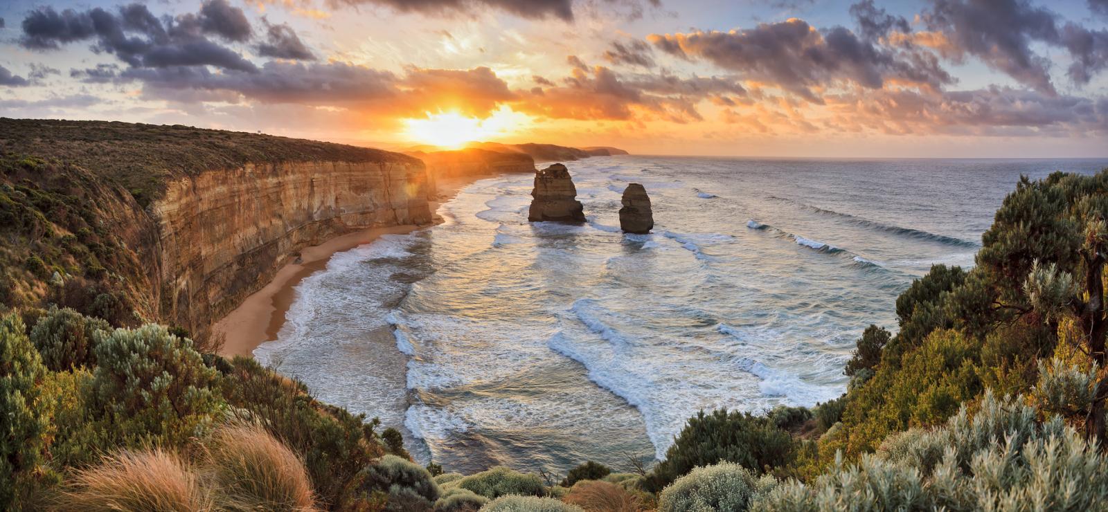 "12 Apostołów” jest najbardziej rozpoznawalną i podziwianą atrakcją Great Ocean Road. Miejsce to jest tak piękne, że postanowiliśmy zaprezentować je jako odrębną isnpirację na naszej stronie. Są to wyrastające spośród morskich fal wapienne kolumny, których majestat jest jednym z najczęściej uwiecznianych na fotografiach widoków w całej Australii.