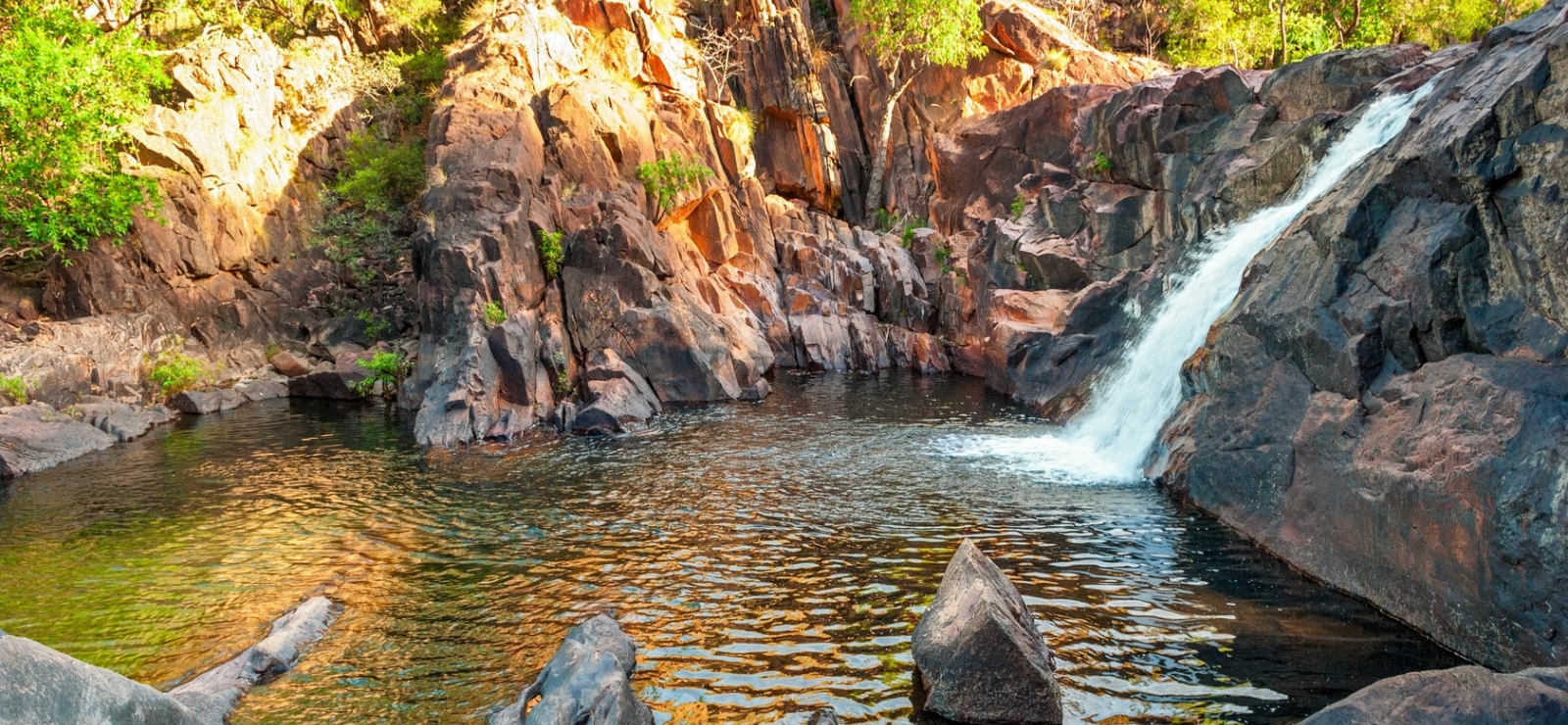 Park Narodowy Kakadu to obraz nieba, odbijającego się w czystych, szmaragdowych jeziorkach. To huk majestatycznych wodospadów Gunlom i Twin Falls, otoczonych rdzawoczerwonymi klifami o wysokości niemal 500 metrów. To mrożące krez w żyłach spotkania z kryjącym się wśród lotosów krokodylem, mieszkającym na rozległych mokradłach. To przede wszystkim podróż w głąb australijskiego świata na tylnym siedzeniu jeepa, na pokładzie chwiejnej łodzi lub na własnych nogach.