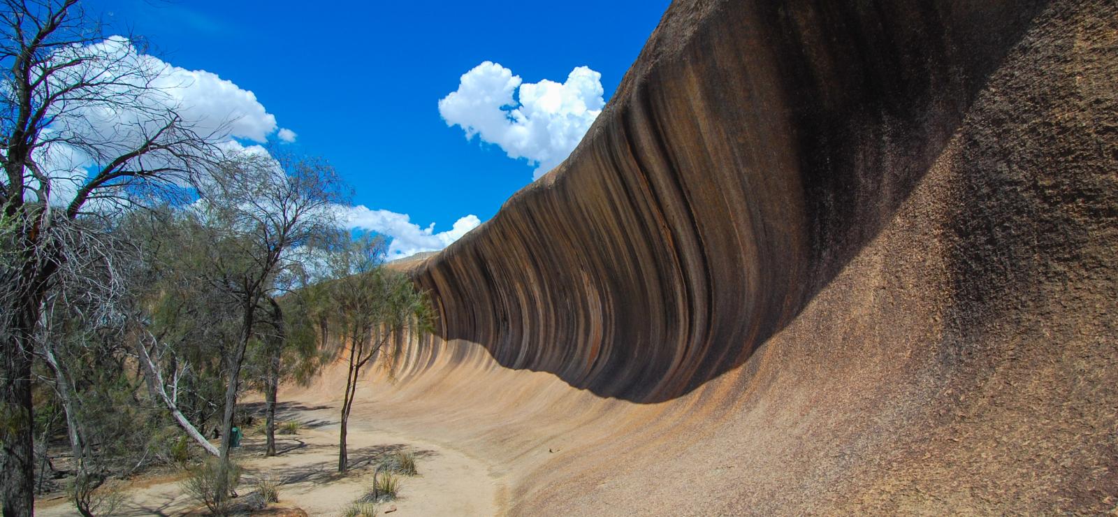 Wave Rock można obejrzeć z góry, podziwiając z jej korony przepiękną panoramę okolicy, ale największe wrażenie robi sfotografowana z dołu z odpowiedniej perspektywy.