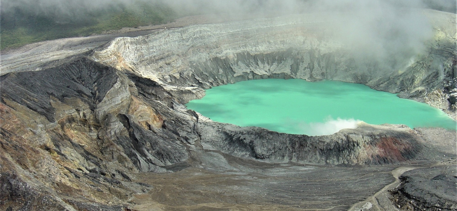 Marzyliście o tym, żeby wspiąć się kiedyś na wulkan i zajrzeć do środka krateru? Tutaj jest to możliwe z pominięciem elementu wspinaczkiJ Mogłoby się wydawać, że skoro jest to jeden z najłatwiej dostępnych aktywnych wulkanów na kontynencie, to raczej nie zaoferuje nam nic godnego uwagi. Nic bardziej mylnego. Jest to jeden z największych kraterów na świecie (1,5 km średnicy, 300m głębokości). W jego wnętrzu znajduje się błękitna laguna i otwory, z których wydobywają się siarkowe gazy. Od krateru w dół, po zboczu góry ciągnie się jęzor zastygłej lawy, która bezpruderyjnie utorowała sobie drogę przez bujną i soczystą roślinność. Paleta barw jest spektakularna i co najważniejsze, możliwa do uchwycenia zarówno źrenicą jak i obiektywem z punktu widokowego, do którego dojdziemy wygodną, szeroką alejką.