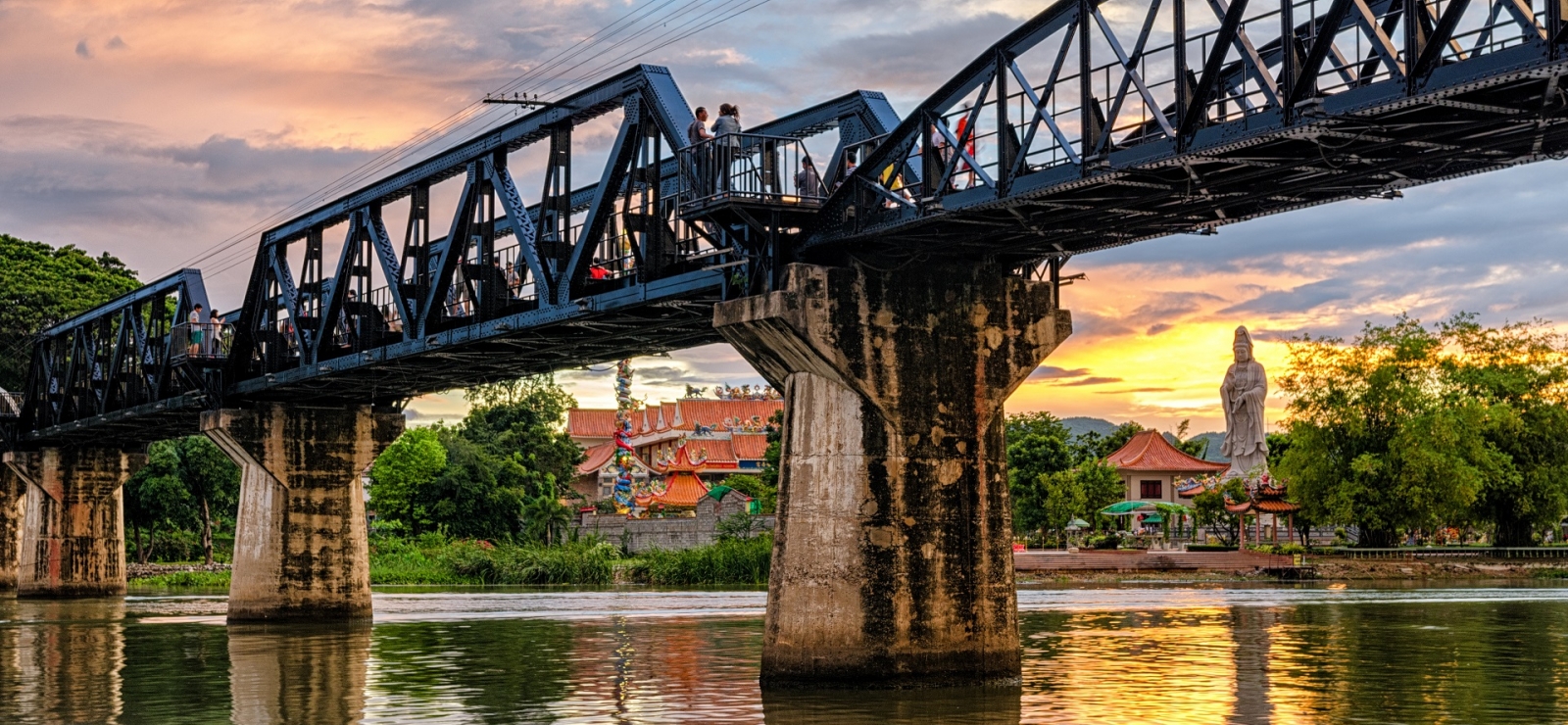 Kanchanaburi nieodmiennie kojarzy się ze słynnym „Mostem na rzece Kwai” i trudną, bolesną historią II Wojny Światowej. W trakcie wojny małe Kanchanaburi cieszyło się ponurą sławą – to właśnie tu przebywali jeńcy wojenni sił alianckich, zmuszani do niewolniczej pracy przez wojska japońskie. Więźniów wykorzystywano do stworzenia mierzącej 415 kilometrów kolei Tajsko-Birmańskiej – jednak praca ponad ludzkie siły w tropikalnym klimacie doprowadziła do śmierci ponad 16 tysięcy z nich. Najtrudniejszym miejscem na trasie kolei była tzw. Hellfire Pass, czyli „Przełęcz Piekielnego Ognia”, gdzie jeńcy przekuwali się przez litą skałę. Dziś pamiątki II Wojny Światowej to największe i najważniejsze atrakcje Kanchanaburi. Wejście na fragment oryginalnego mostu na rzece Kwai - „Mostu Śmierci”, chwila zadumy na jednym z dwóch cmentarzy wojennych oraz odwiedziny w nowoczesnym i wzbudzającym falę emocji Centrum Kolei Tajsko-Birmańskiej pozwolą nam zapoznać się z mniej znaną częścią historii II Wojny Światowej.