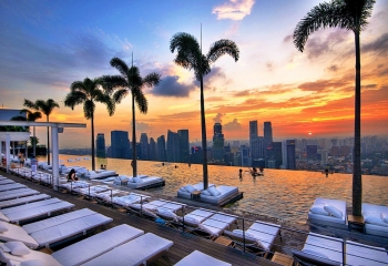 Marina Bay Sands to jedna z najbardziej rozpoznawalnych wizytówek Singapuru. Charakterystyczny hotel wznosi nad zatoką Marina Bay i Gardens by The Bay. Posiada największy na świecie basen bez krawędzi, znajdujący się na dachu pokrywającym trzy wieżowce. Z tarasów widokowych, basenu oraz okien sięgających od sufitu do podłogi można podziwiać piękną panoramę Singapuru. Goście mogą korzystać z bezpłatnego WiFi, stołować się w jednym z 20 lokali gastronomicznych prowadzonych przez światowej sławy szefów kuchni, przepuścić majątek w kasynie lub odprężyć w SPA.
